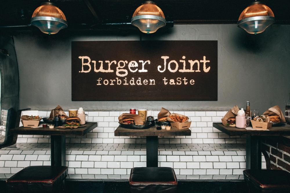 Burger Joint ligger i lokalet under Beer Palace og ved siden av Latter på Aker Brygge. Interiøret er røft, tøft og intimt med sitteplasser til om lag 25 gjester.